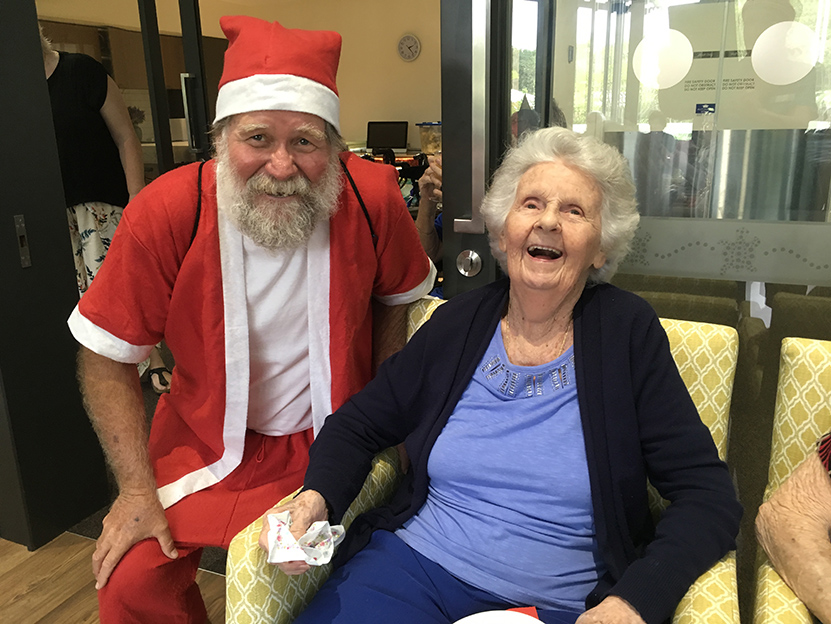 Kewarra Aged Care staff and residents have been celebrating the joys of Christmas! There was plenty of tinsel and laughs going around. Santa made an appearance at the annual Christmas party and even stayed to take a photo with Betty. There was a surprise visit from one of our Volunteers Heather, and her four-legged friend Daisy the dog! Resident Audrey was happily showing off her beautiful wreath she had made in the Christmas Craft workshop. There was plenty of fun and games including Christmas bingo. Everyone enjoys the festive season, especially here at Kewarra where everyone is one big happy family.