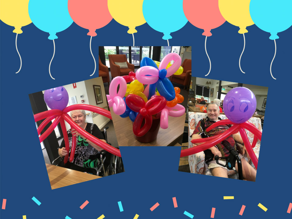 Residents have channelled their inner child during our arts class. Together we have all made some larger than life balloon animals, flower arrangements and swords, perfect for a little sword fight between residents and staff. It’s safe to say the staff didn’t stand a chance!